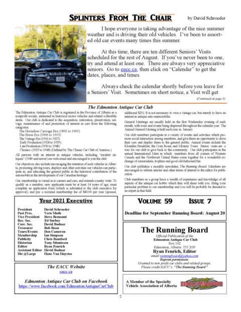The Edmonton Antique Car Club is registered in the Province of Alberta as a additional $20). It is not necessary to own a vintage car, but merely to have an