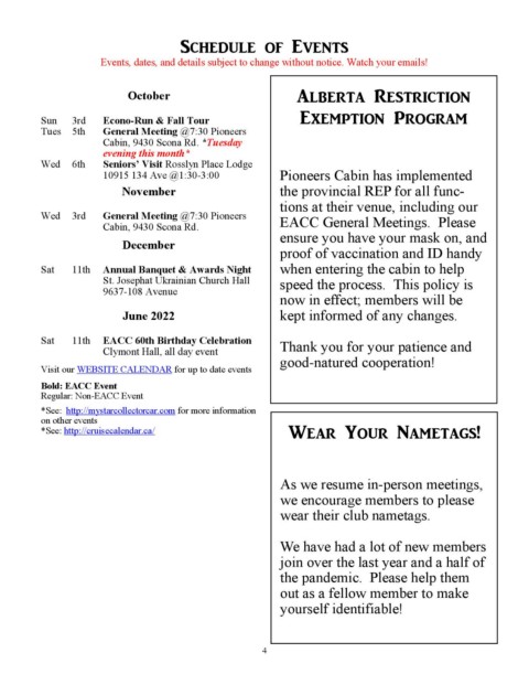 *See: http://cruisecalendar.ca/ Wear Your Nametags!