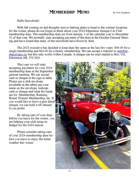 for the winter, please do not forget to think about your 2024 Edmonton Antique Car Club