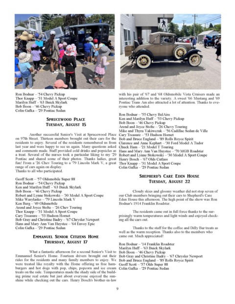 residents to enjoy. Several of the residents remembered us from Clarence and Anne Kephart – '30 Ford Model A Tudor